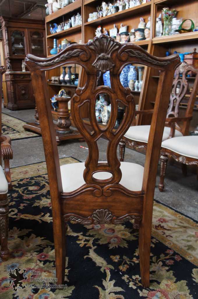 Here we have a stunning set of 6 dining chairs with a neat collaborative styling. The chairs are mix of Chippendale and Rococo styling. Finished in Mahogany with pierced back and carved and scalloped accents.