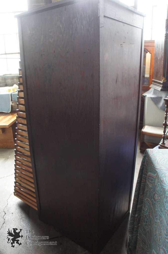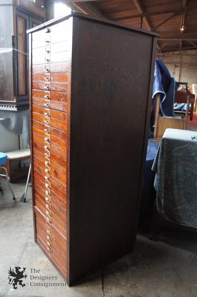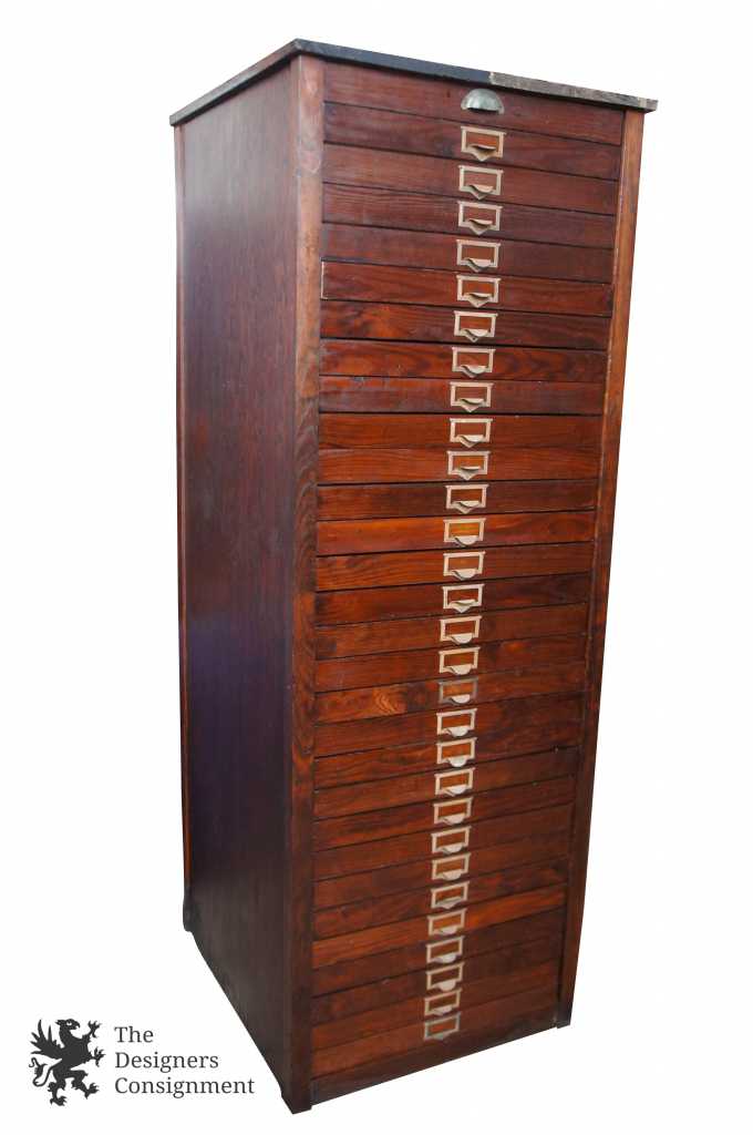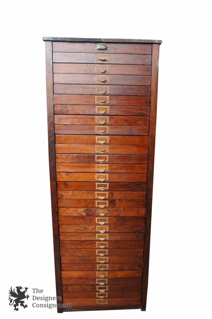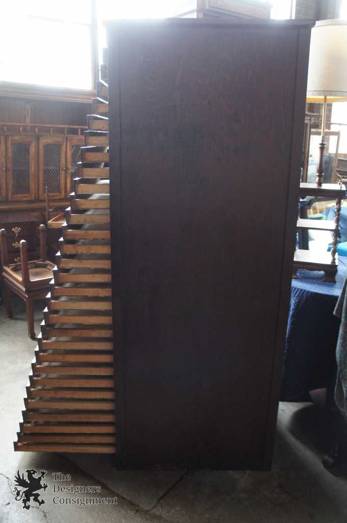 Here we have very unique find. Featured is a 30 drawer Apothecary/ map cabinet. Made from Oak with Iron hardware. Circa mid century. Typically these pieces will be found in about half the size or double the width. The cabinet is 6'7" with very deep drawers. The four side post of the cabinet and drawers are solid oak, while the side and back paneling are veneer.