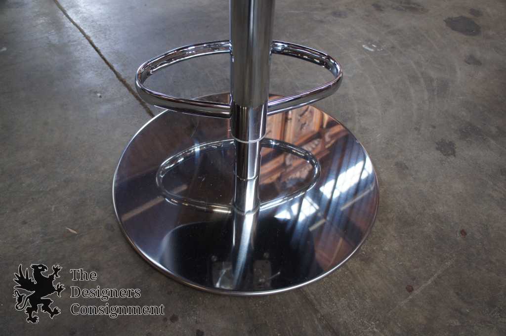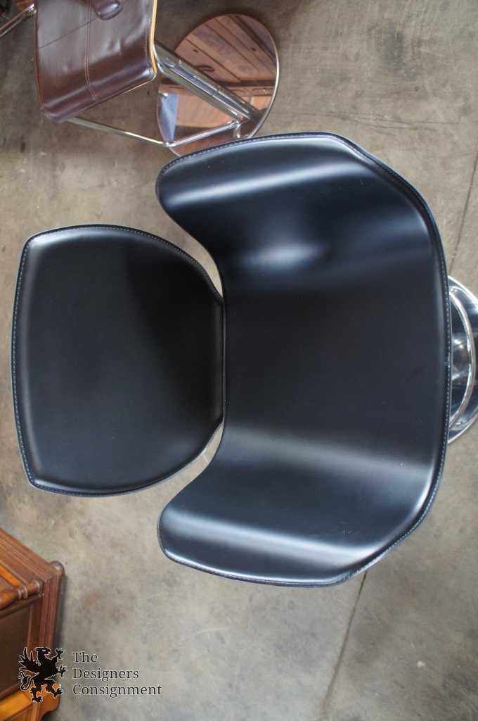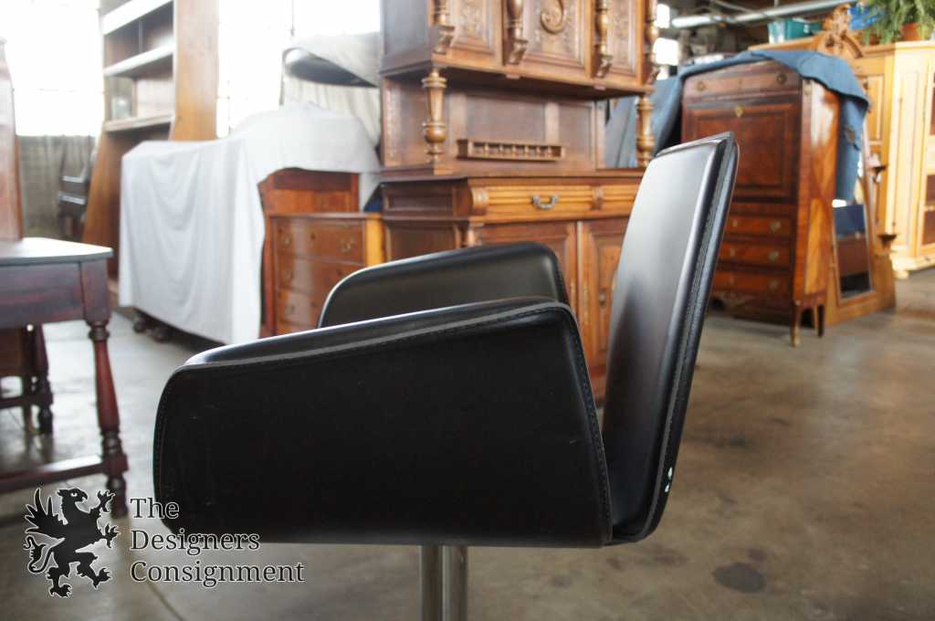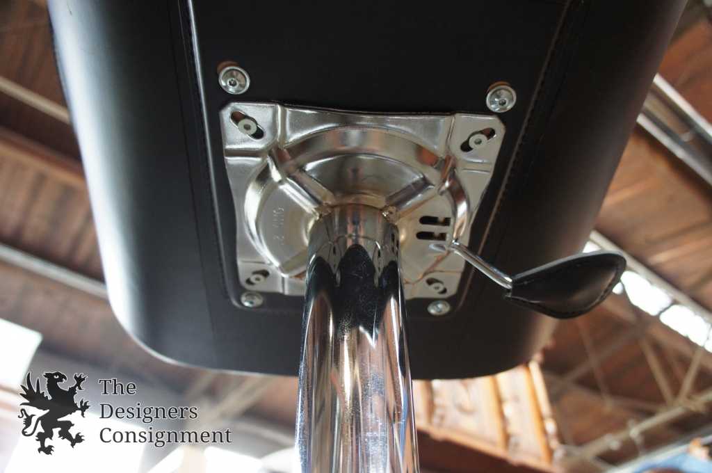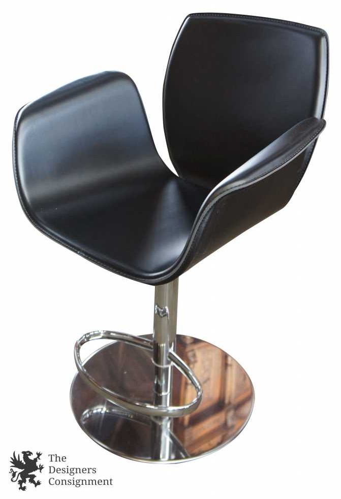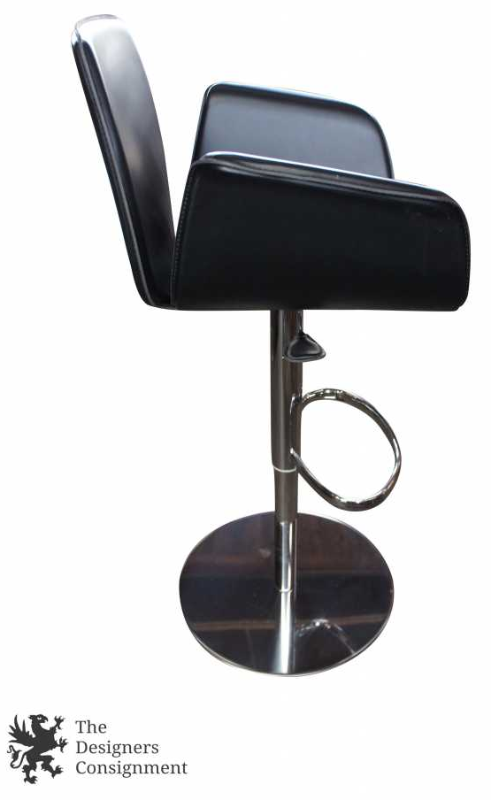 A unique sleek black modern pneumatic stool with chrome base. Perfect for any bar or parlor setting.