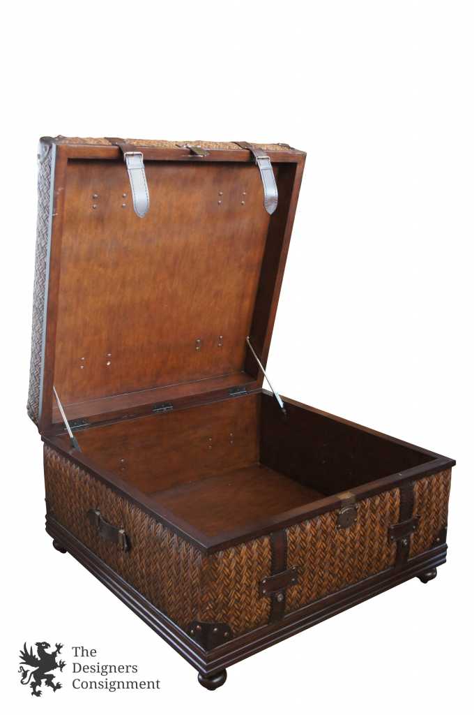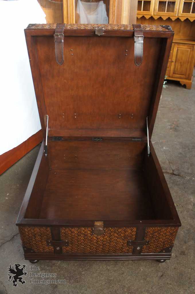 Frontgate Woven Rattan Coffee Table Ottoman Chest Storage Leather Straps 36