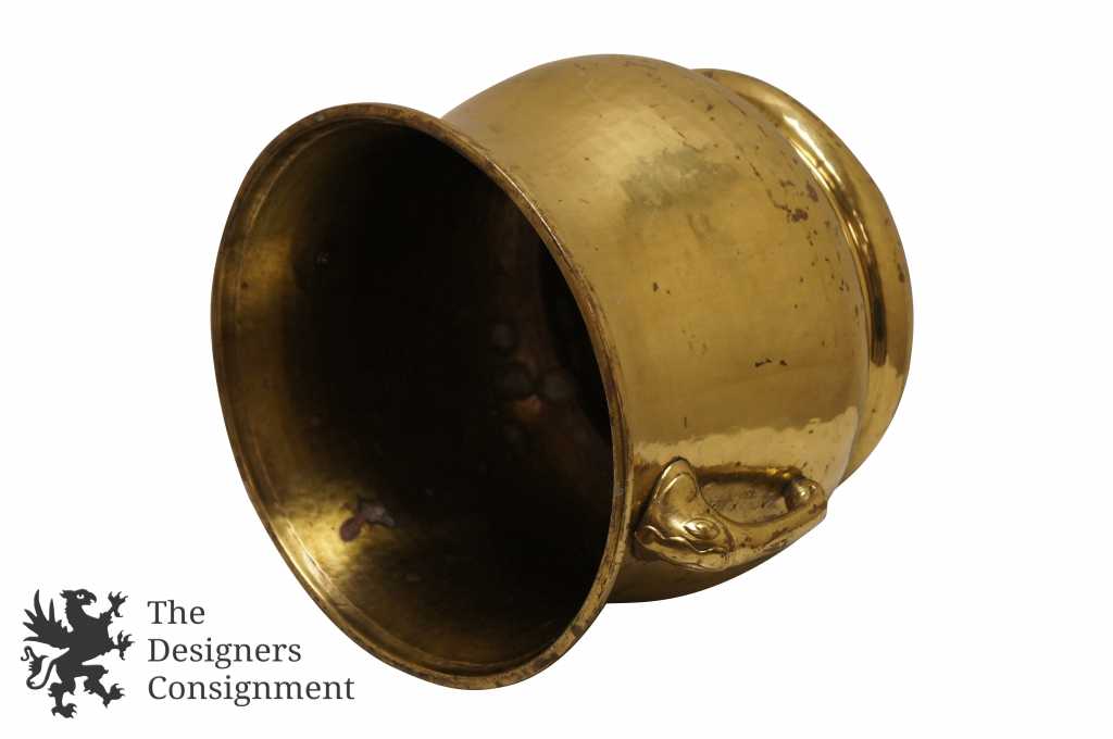 Vtg Brass Planter Bucket Indian Elephant Head Handles Spittoon 11" Jardiniere