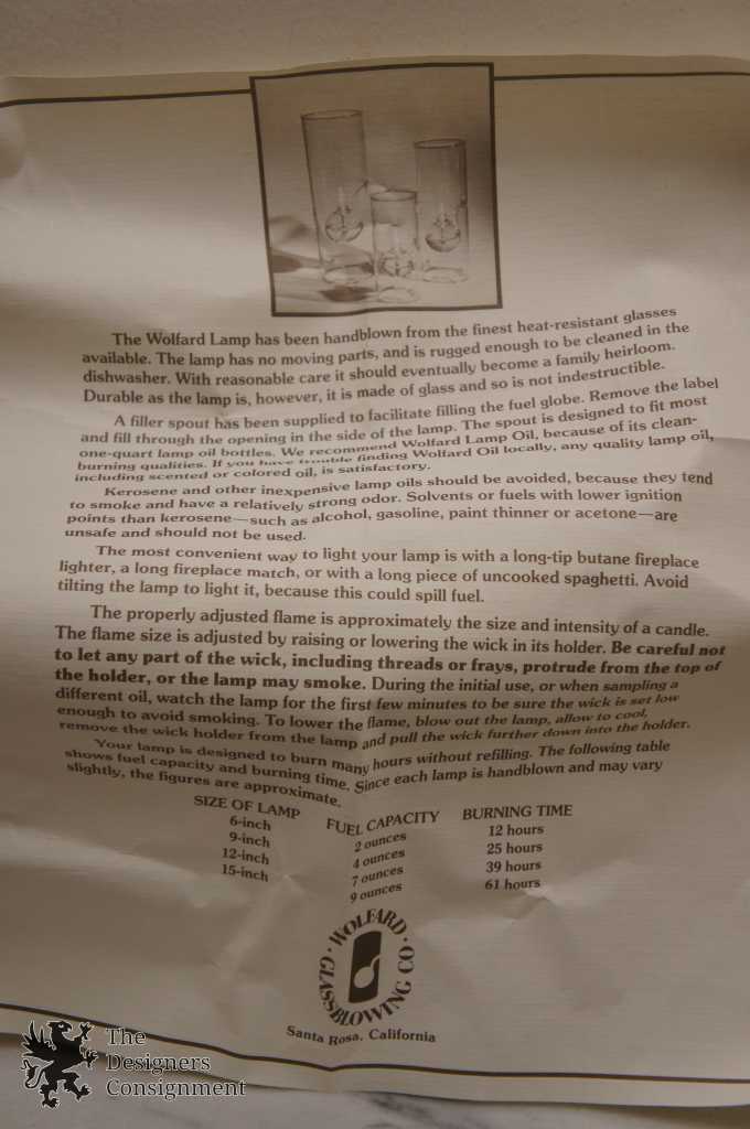 9" Vintage Wolfard Hand Blown Clear Glass Suspended Oil Lamp Hurricane W/ Box