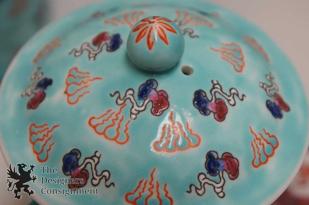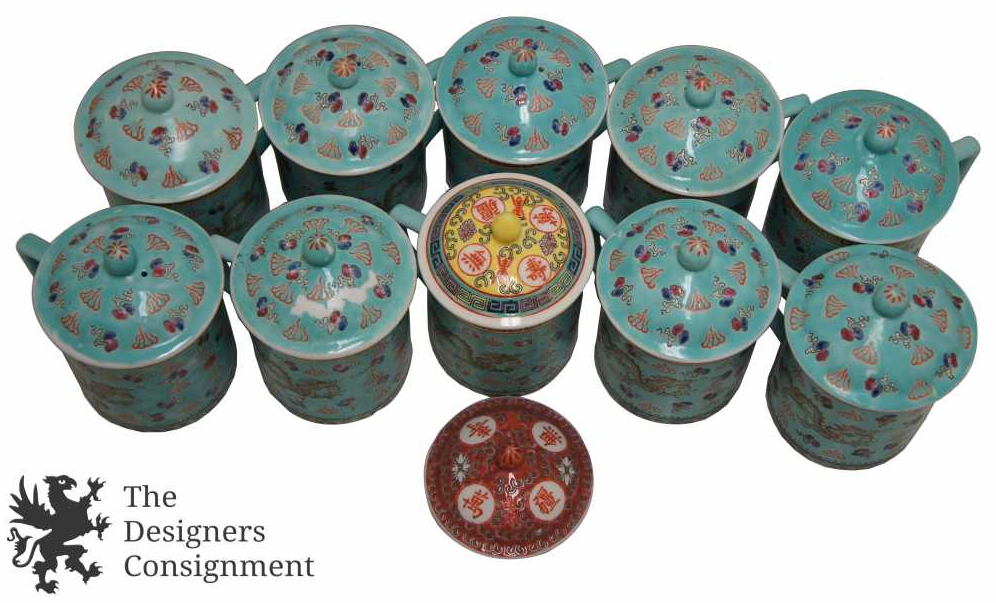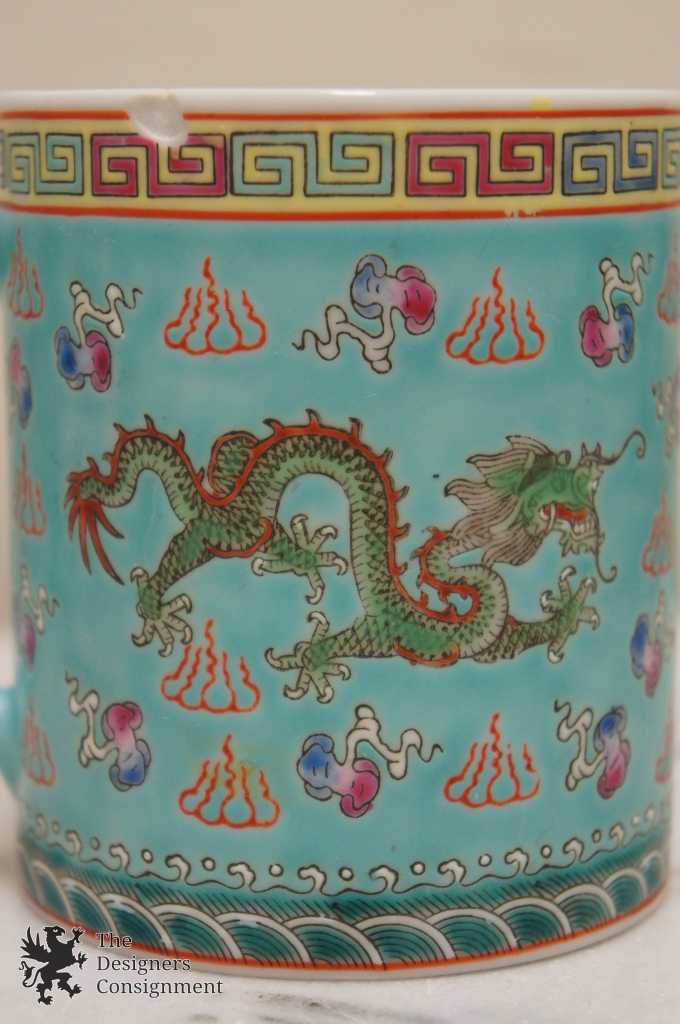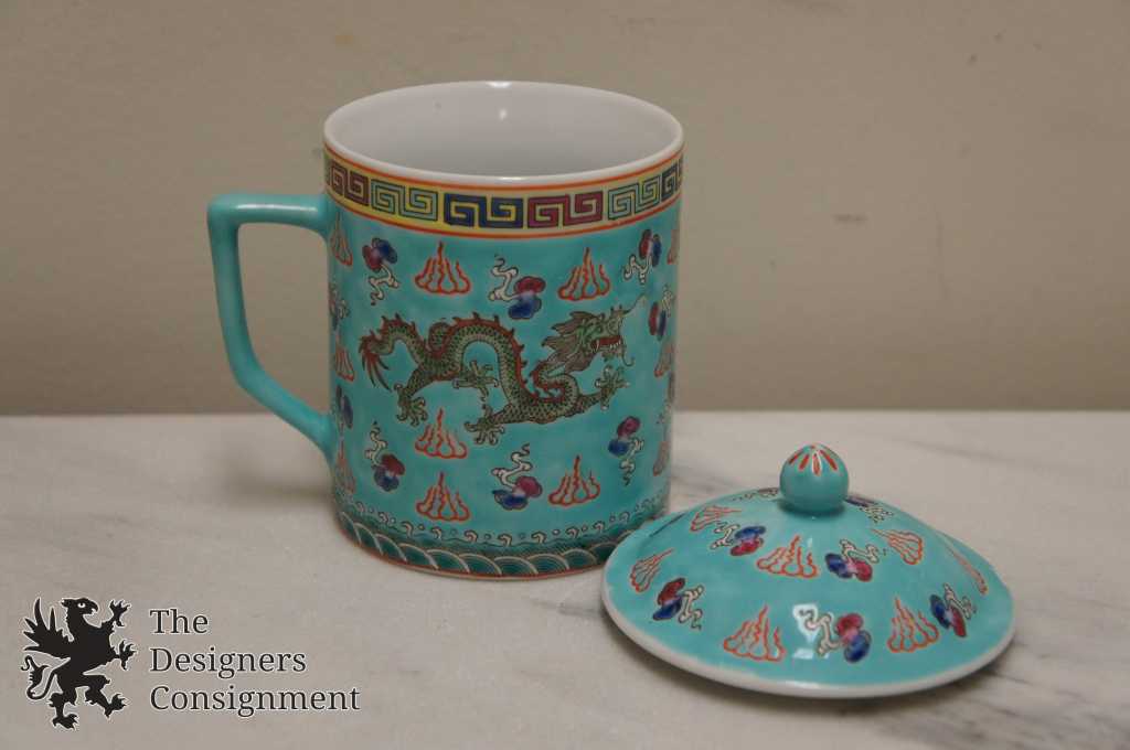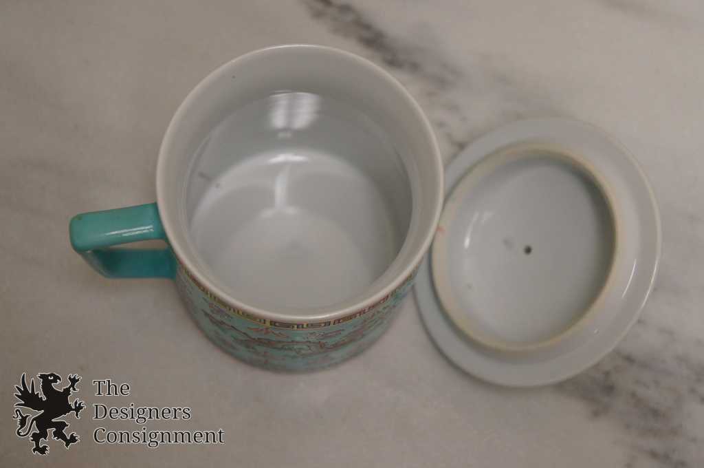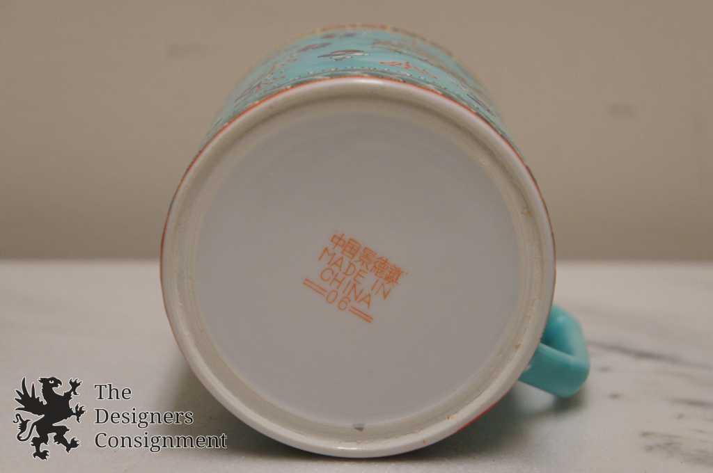 Available for your consideration is this beautiful Jingdezhen Zhongguo Mun Shou longevity porcelain covered mug or cup in the Turquoise Color.
