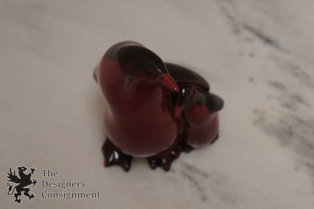 This beautiful model of a King Penguin and her Chick was produced by Royal Doulton in their famous 'flambé' glaze. It is Model 239 and HN198. The model was in production between 1918 & 1961. This example, which is signed by 'Charles Noke' was made in 1947