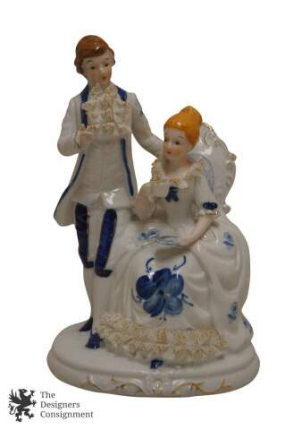 Figural Porcelain Statuette Colonial Baroque Figures Man Woman Lacework Vintage