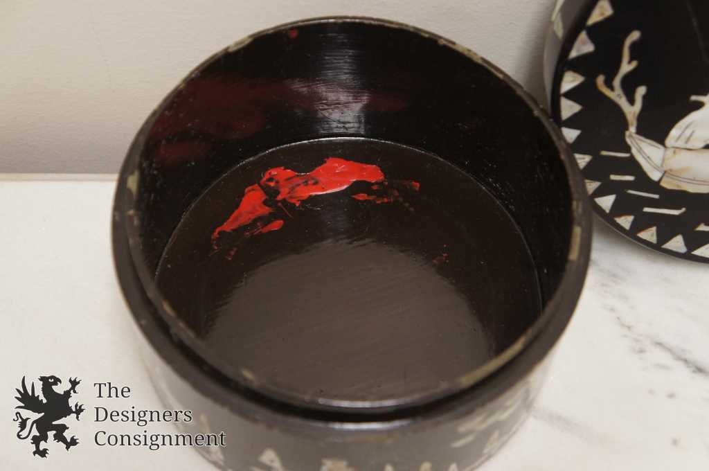 Gently Used - Some Cracks in Surface; Wood Slat Glued to Back of Tray; Chip in Edge of Box Lid