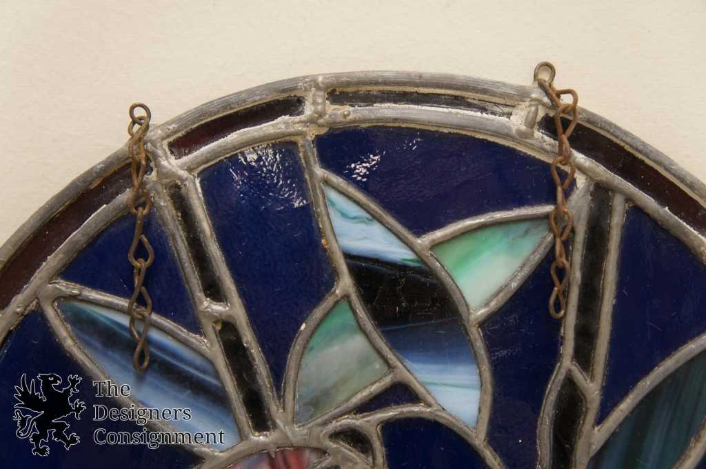 Vintage Leaded Stained Glass Wall Hanging Window Panel Red Rose Floral Round