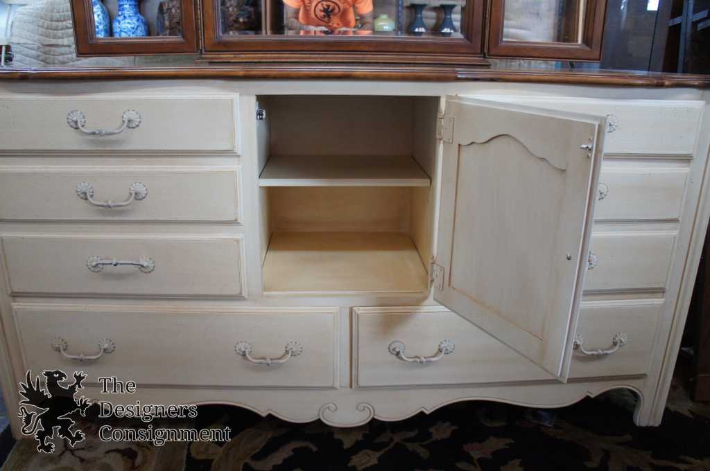 Up for consideration is a country french Triple Dresser with Tri-fold Mirror by Ethan Allen. Approximately 10-15 years old. Features an 18th Century French Design with an ornately painted base and natural Maple top. This piece is offered at a fraction of the original cost. Matching bed & nightstand available.