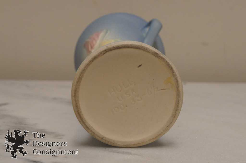 Hull Art Pottery USA Tulip Sueno 100-33-6" Handled Vase Blue Vintage
