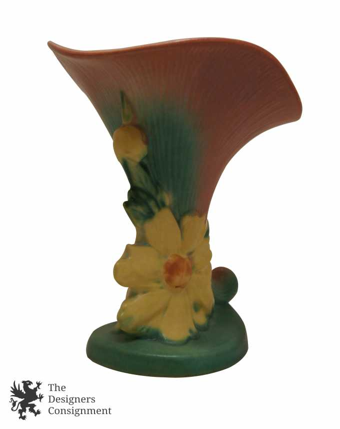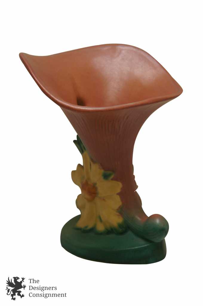 Vintage Original Roseville Pottery Peony Vase 171-8 Cornucopia Planter Pink