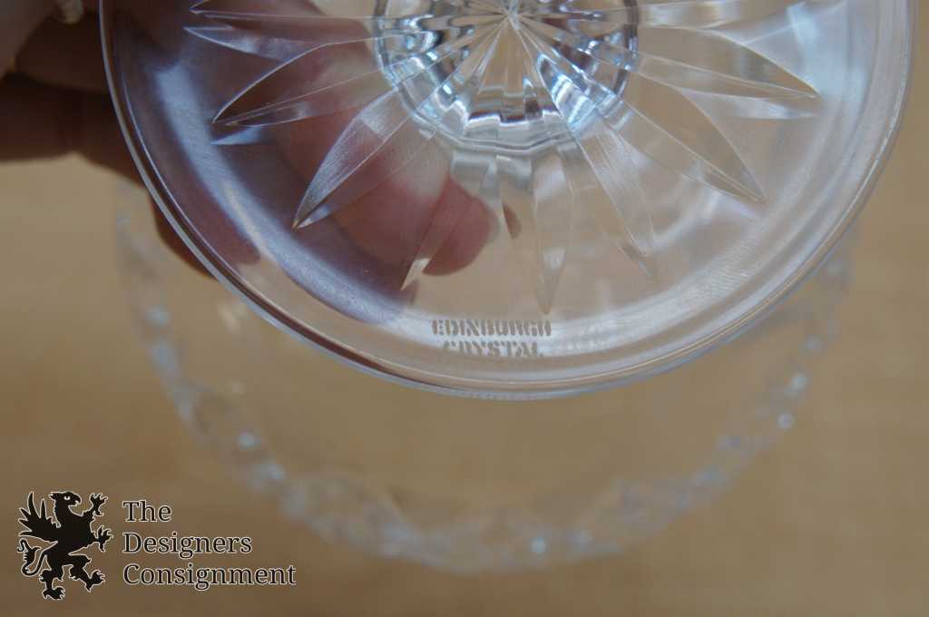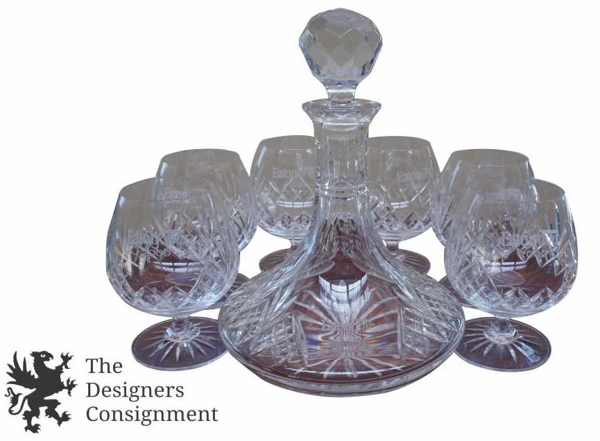 A beautiful crystal cut decanter set by Edinburgh Crystal. Complete with Mahogany Display/Storage case. Features 6 goblets & a decanter Each piece is etched/Personalized from Eatonform, Inc in Moraine, Ohio, a healthcare product group.