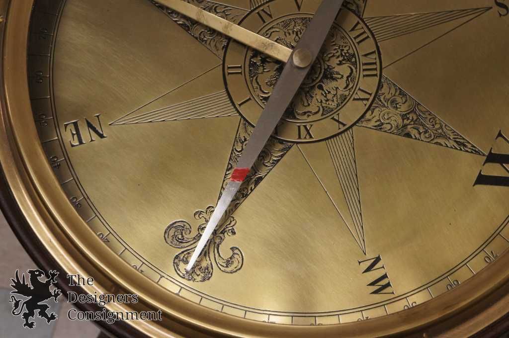 A great gift for the study or office, the compass face is etched metal and really works, so you'll always know true North. The legs adjust to the perfect height for parking a drink beside your favorite chair. Walnut with antique brass finish.