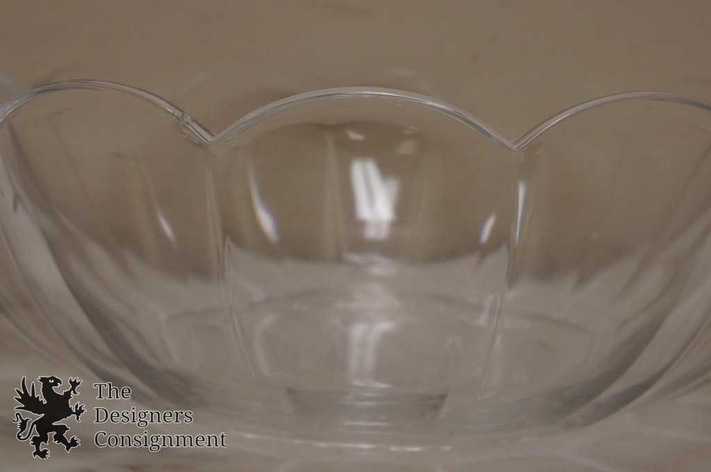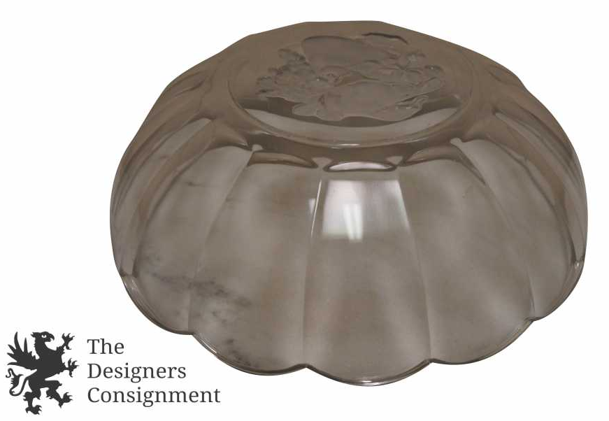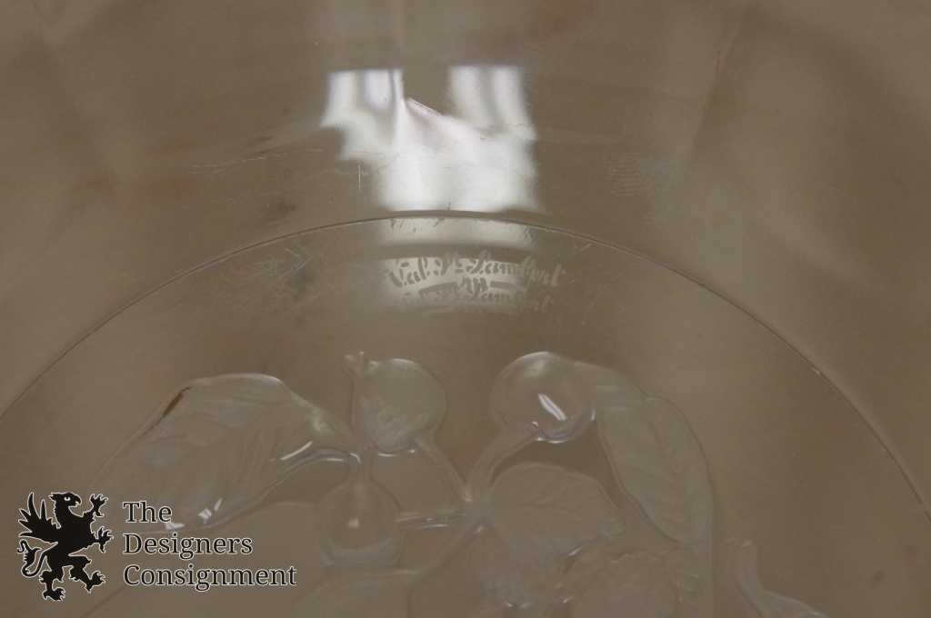 With an etched fruit design at the center and a scalloped edge it makes for the perfect serving dish. Made in Belgium. Signed along the bottom