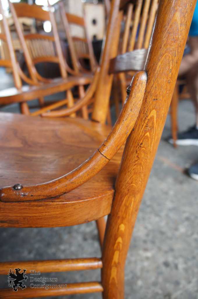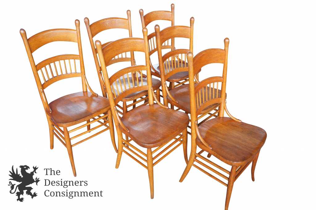 Antique set of 6 dining chairs. Primitive Country style. Made from Ashwood with a ladder style back featuring spindles along the center.