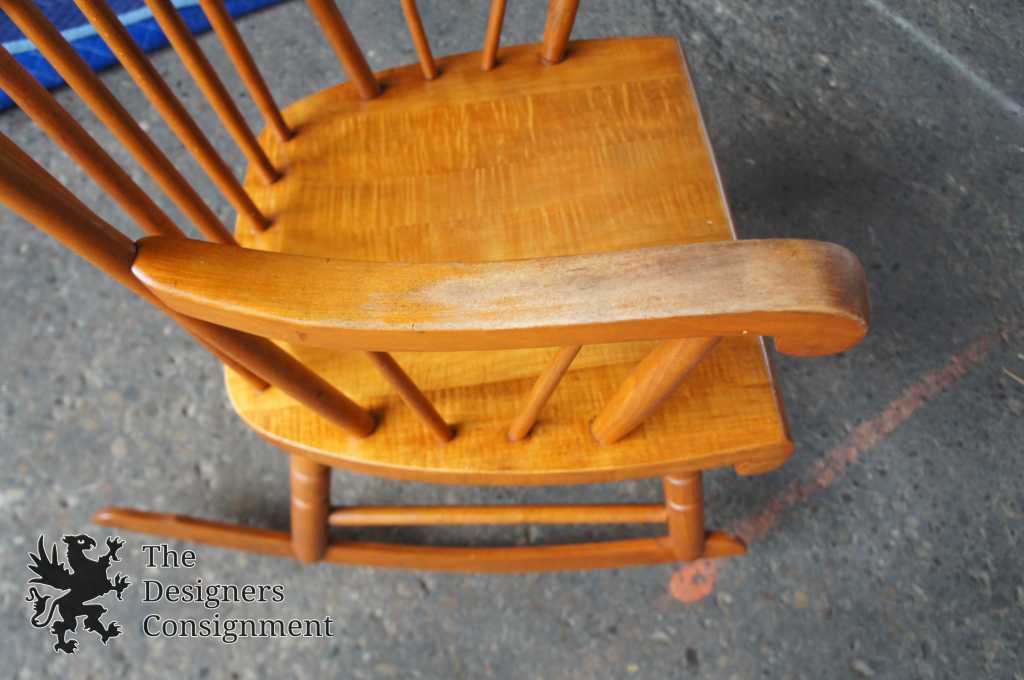 Antique Maple Boston Rocker Rocking Chair Comb Back Turned Spindle Leg 41