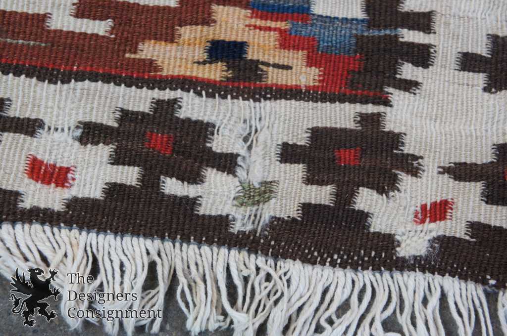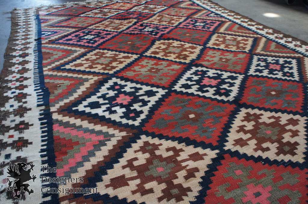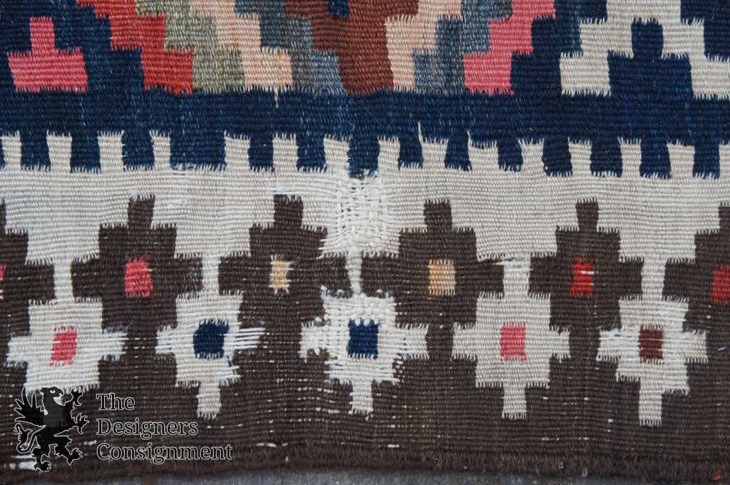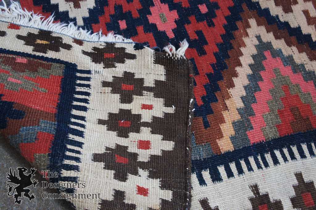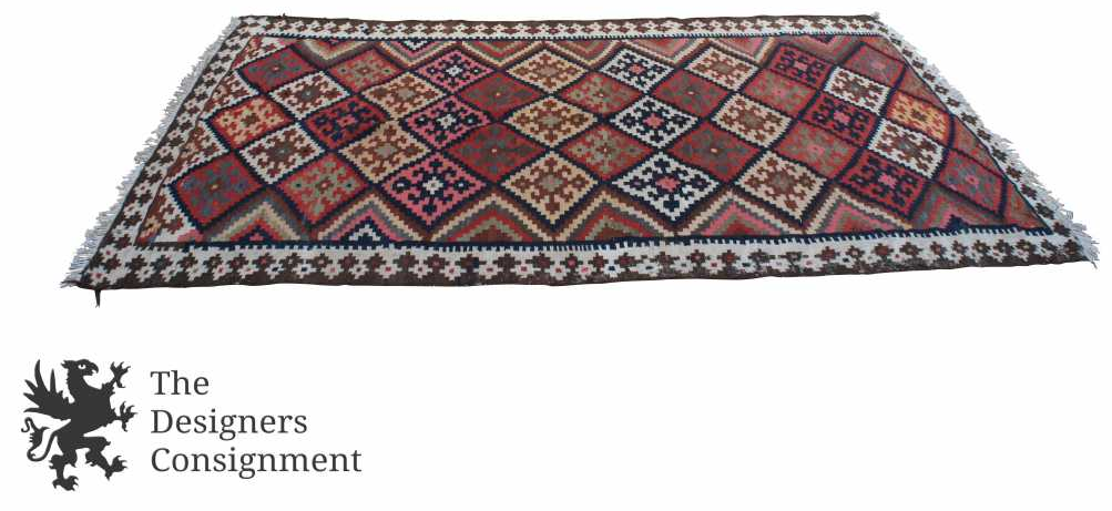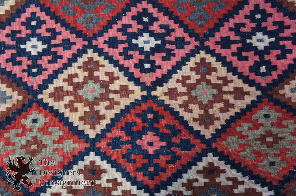 Semi-Antique Geometric Tribal Kilim Rug. Made around the city of Shiraz an Iranian providence known for its tribal weavers. This beautiful piece shows a neat diamond pattern with an exceptional use of colors.