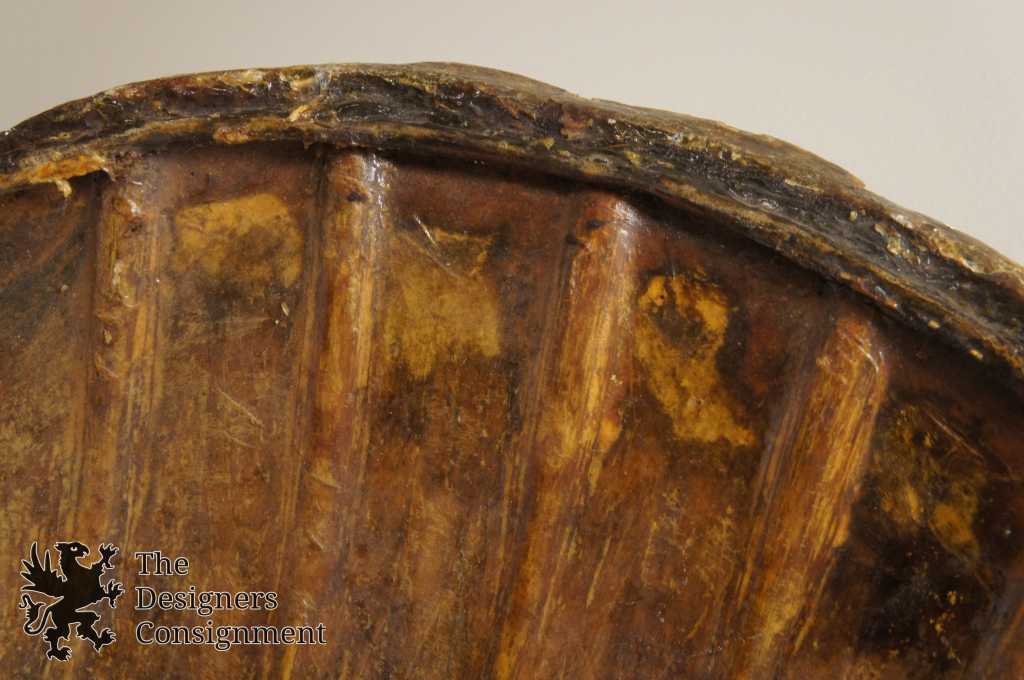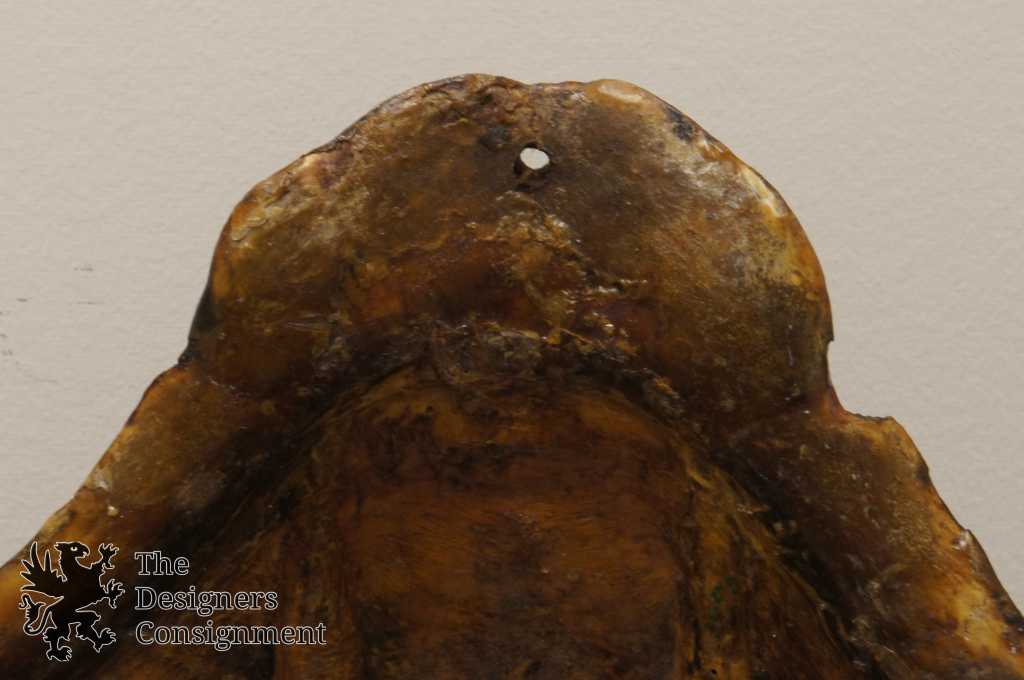 A large 26" turtle shell taxidermy. There is a small hole drilled in the top towards the tail for hanging on a wall.