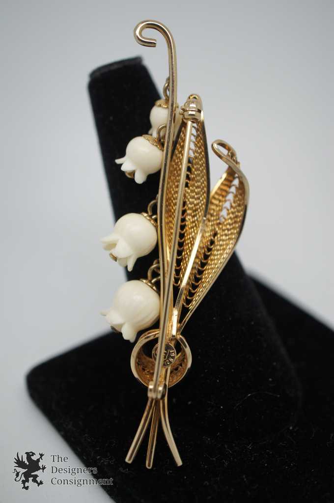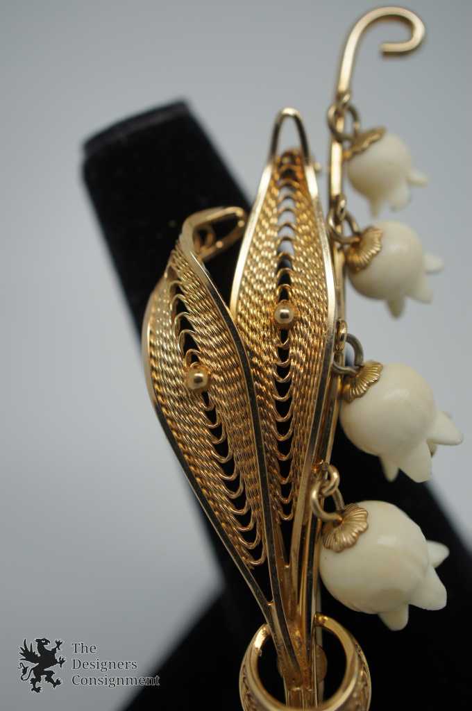 Vintage 12K Gold Filled Brooch Pin & Screw Back Earrning Set Lily of the Valley