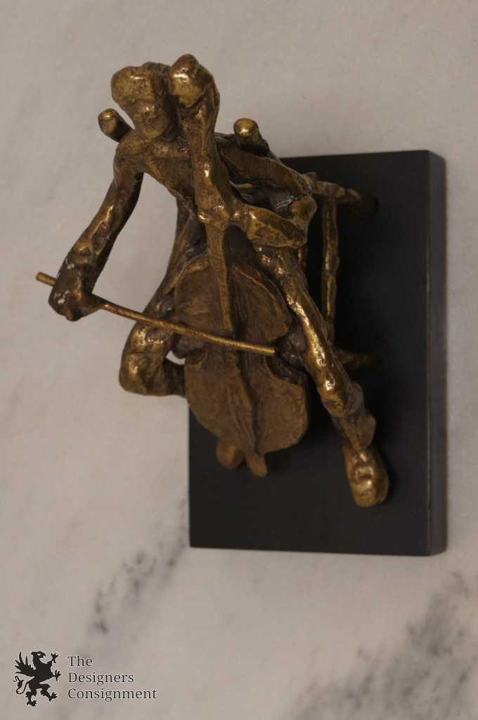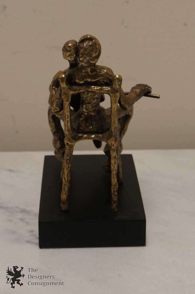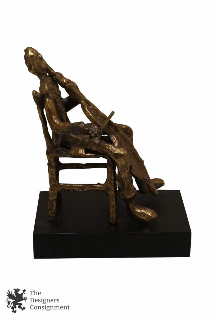 Brass Cellist figure featuring a seated individual over a black base. Marked Korea along the bottom.