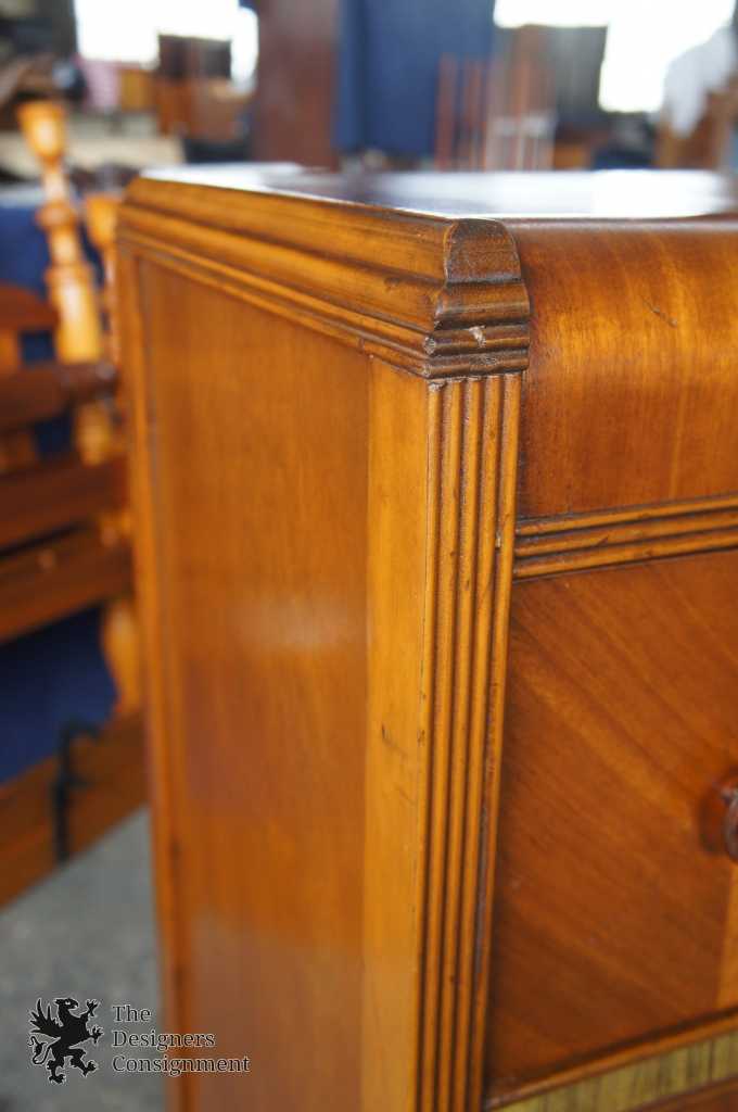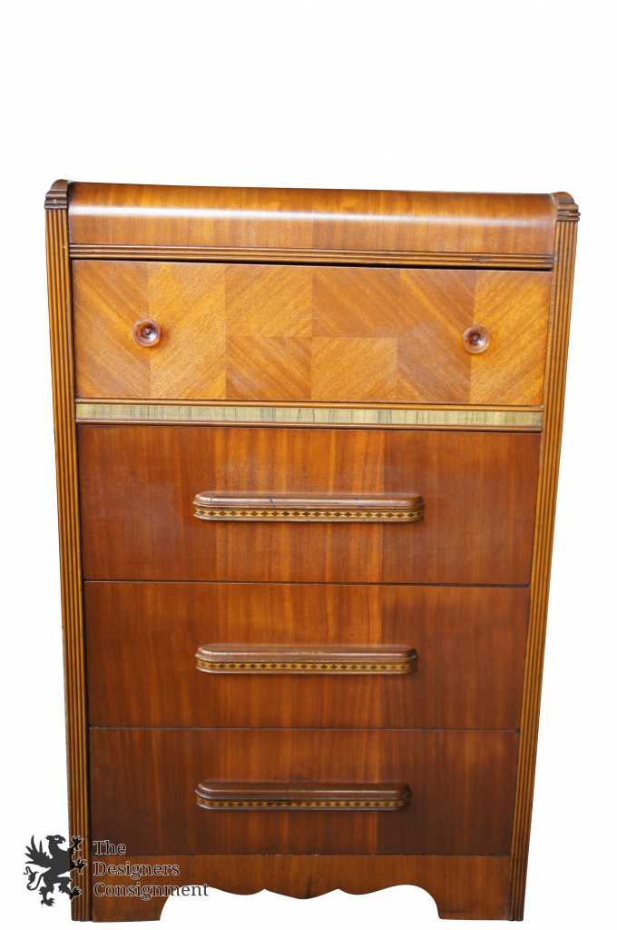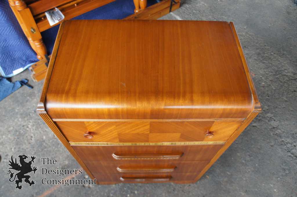 Antique Walnut Waterfall Tallboy Dresser Chest 4 Drawers Art Deco Bakelite 48"