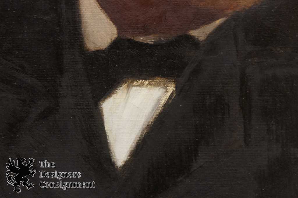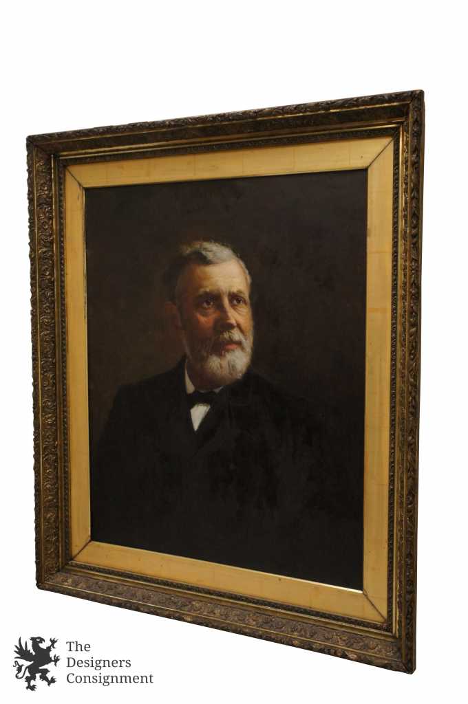 Born in Wheeling, Wv. Morgan was known for portraits. This piece has the semblance of Robert E. Lee. The gentleman is painted in a double breasted suit with bowtie. Painted on canvas and signed along the lower left. Frame is Victorian with low relief gesso design in gold. A neat addition to any collection.