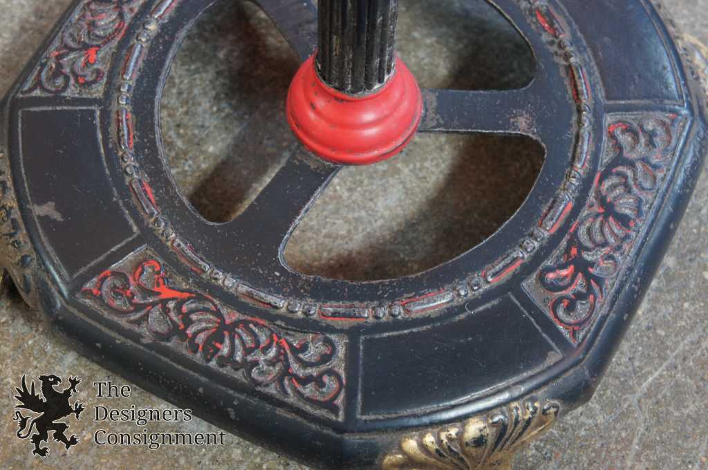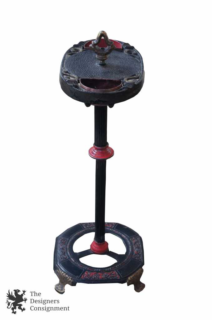 Antique Art Deco Cast Iron Cigar Smoke stand Ash Tray Red Painted Tobacciana 25"