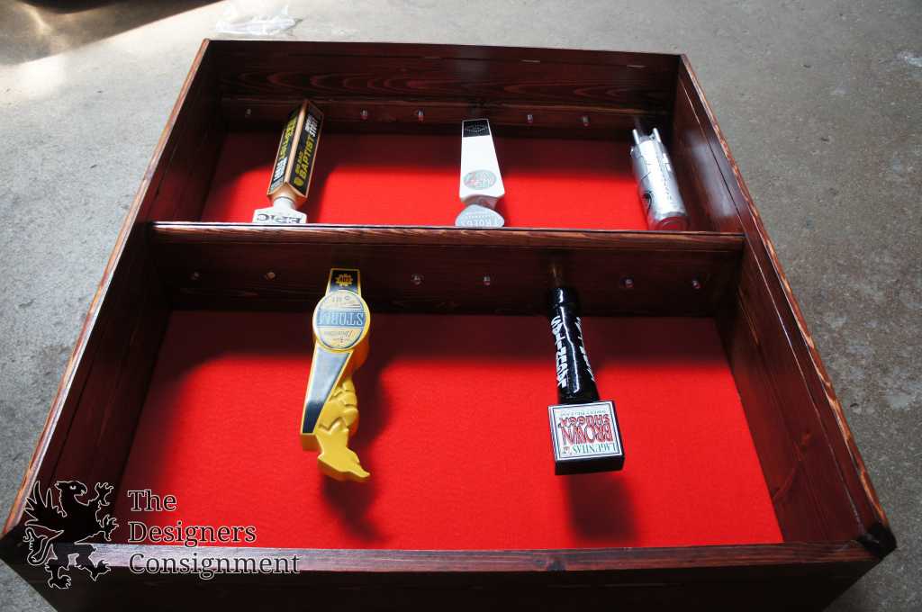 A neat wall hanging shadow box made for Beer Tap handle display. Room for 16 handles. Plexiglass front for protection.