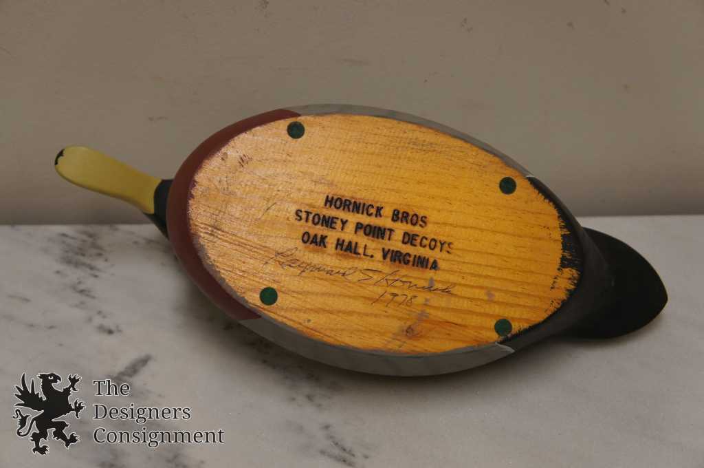 Hornick Bros Stoney Point Decoys by Raymond Hornick 1978. Made from solid wood with a beautifully painted body and glass eyes. Signed along the base