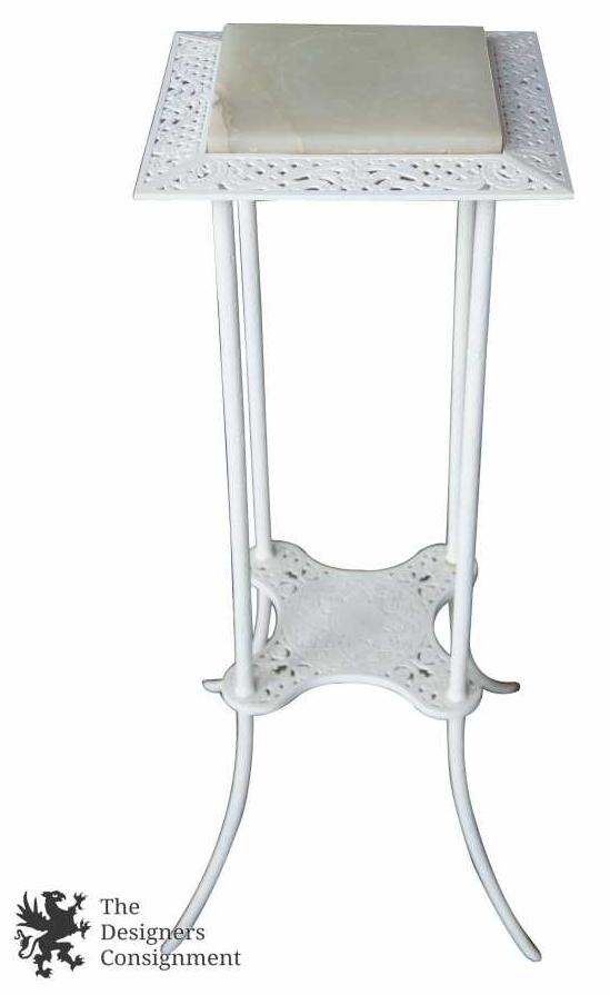 Antique Bradley & Hubbard Victorian Iron Marble Top Pedestal Table Plant Stand