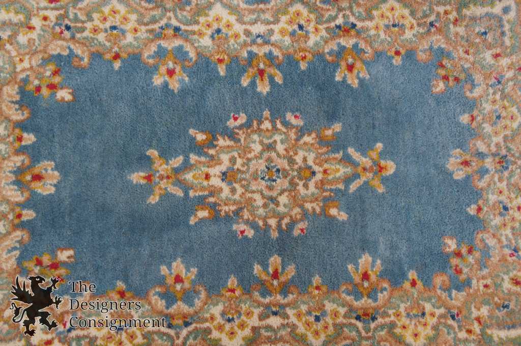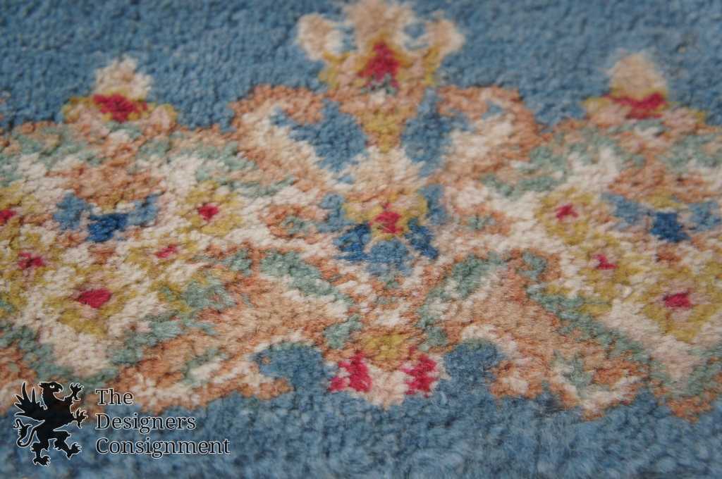 Floral Tabriz rug/mat from Iran. Labeled Hakian Bros. Inc. Blue & Gold floral design