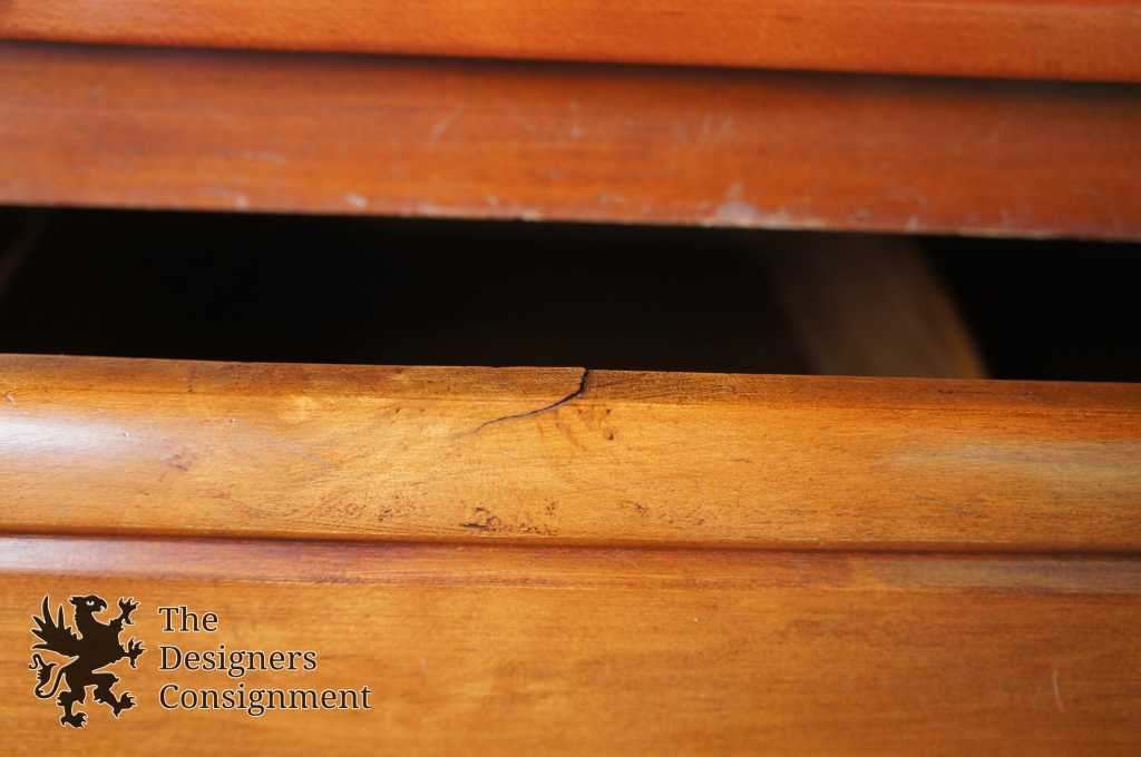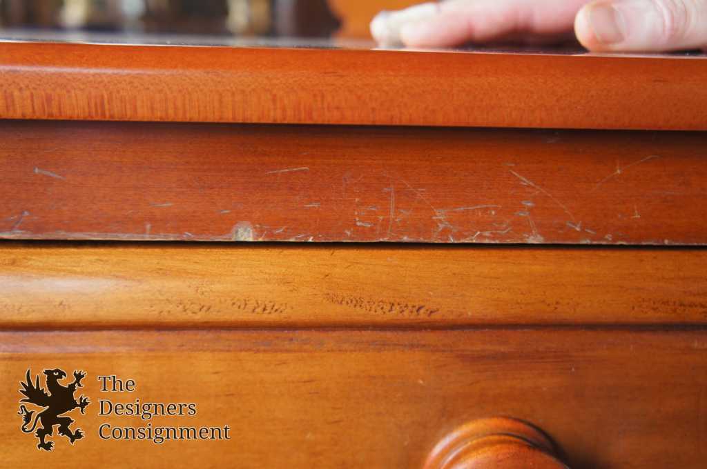 Very Good Considering Age - Streaking to Mirror; Split and some light marking above upper drawer. Small ding towards the right of the lowest drawer. Top surface in exceptional condition!