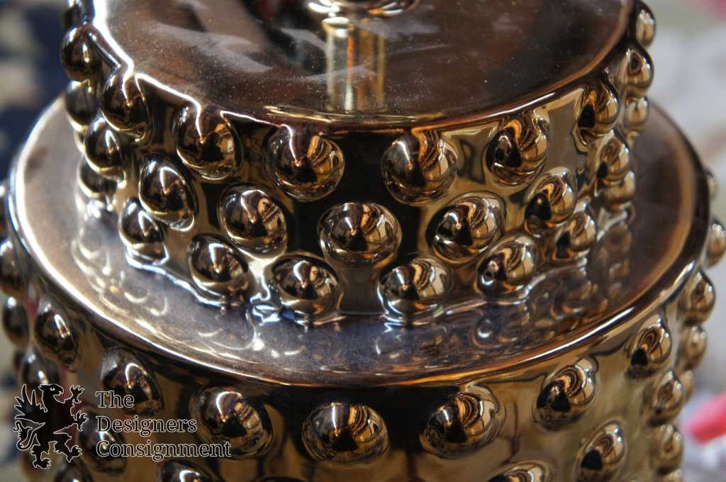 A gorgeous Robert Abbey Dolly Collection lamp designed by Mary Mcdonald. Ceramic with hobnail pattern and vibrant gold finish. A neat addition to any contemporary space.
