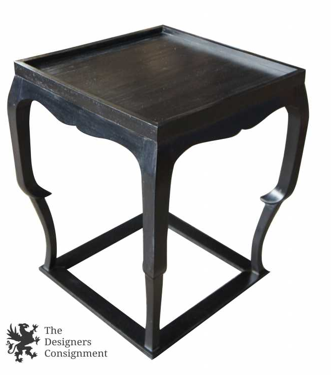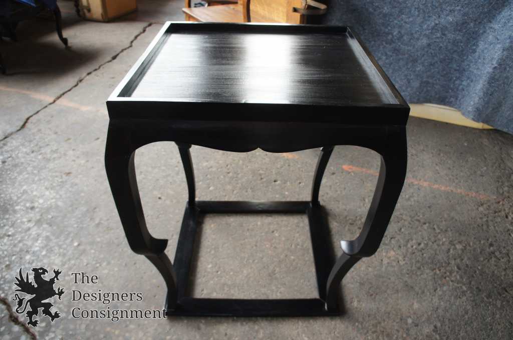 QS Bellini Side Table by Noir. Asian Inspired with serpentine legs and flared accents. Made from Mahogany with hand rubbed black finish. 22lbs. This item came from a design gallery and is like new. Don't miss the opportunity to snag it at a fraction of the cost. Cheapest available online is $840. Retails for over $1,000. This table will be hand delivered via White Glove Service