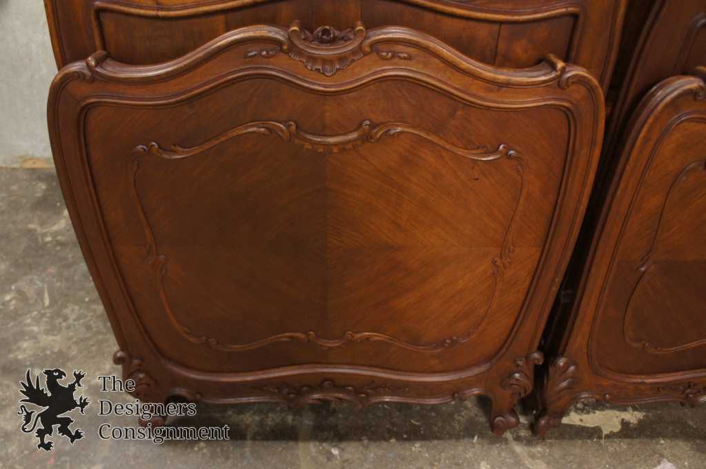 Louis Phillipe era twin size beds after Louis XV styling. Made from walnut with hand carved flourishes. Beautifully contoured, with an amazing grain pattern.