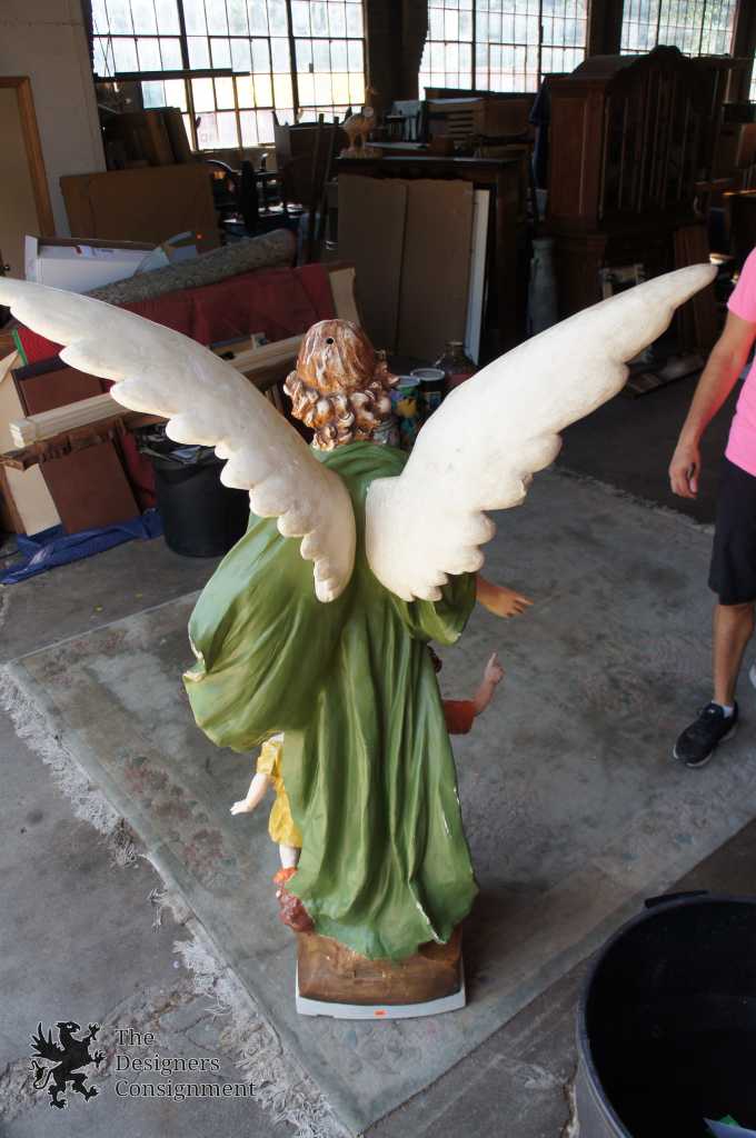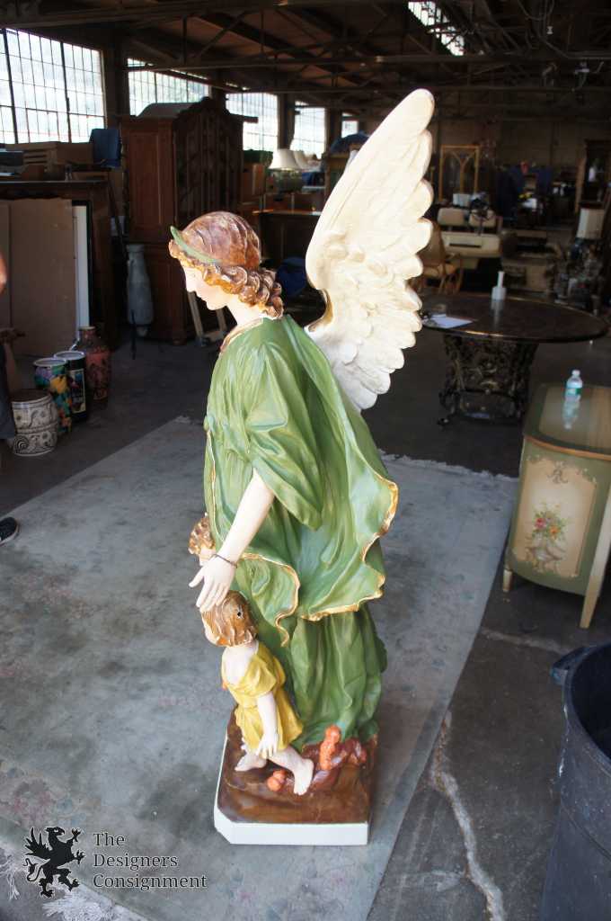 A magnificent early-mid 20th century statue by Deprato. Featured is a winged guardian Angel with 2 children. The statue is made from plaster before being hand-painted with gorgeous detail.