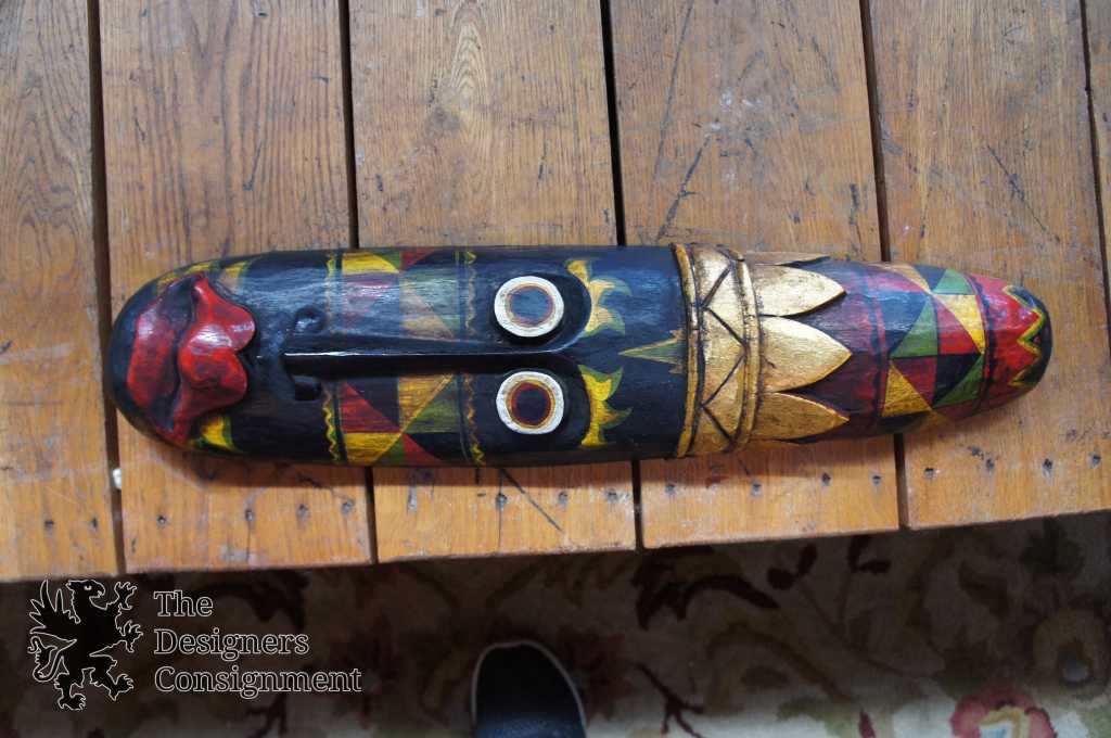24" Primitive Tribal Carved Wall Hanging Mask Painted Geometric Design Vintage