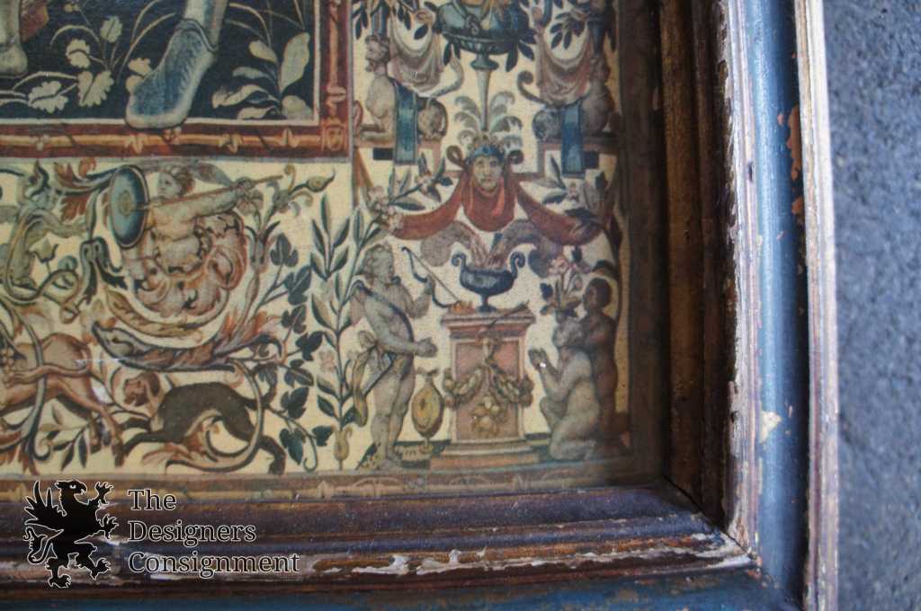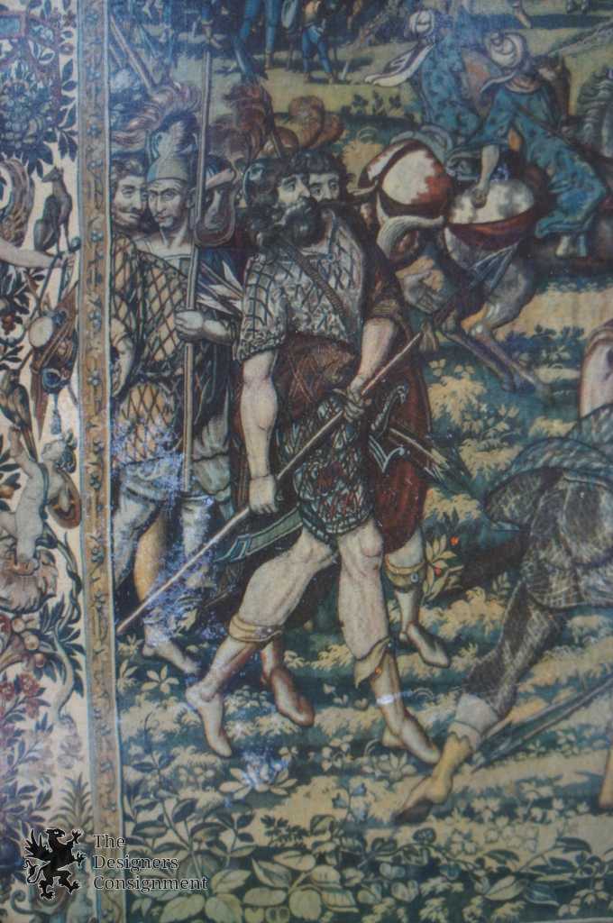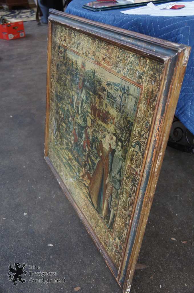 Up for consideration is a unique early 20th century piece purchased at the Natale Busoni Gallery in Italy. Featured is a print of a tapestry depicting a Renaissance battle. The scene at hand is most likely the battle of San Romano between the Florentine and Sienes forces in 1432. Along the front are 2 men and a woman. Possibly kings/princes and Queen overseeing the battlegrounds. An amazing landscape with elaborate detail. Framed in wood. There is a sticker along the back from Natale Busoni's shop in Italy.