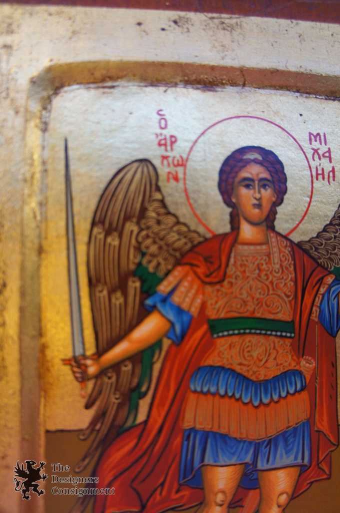 Handpainted Byzantine Style Religious Christian Icon Archangel Michael w/ Sword