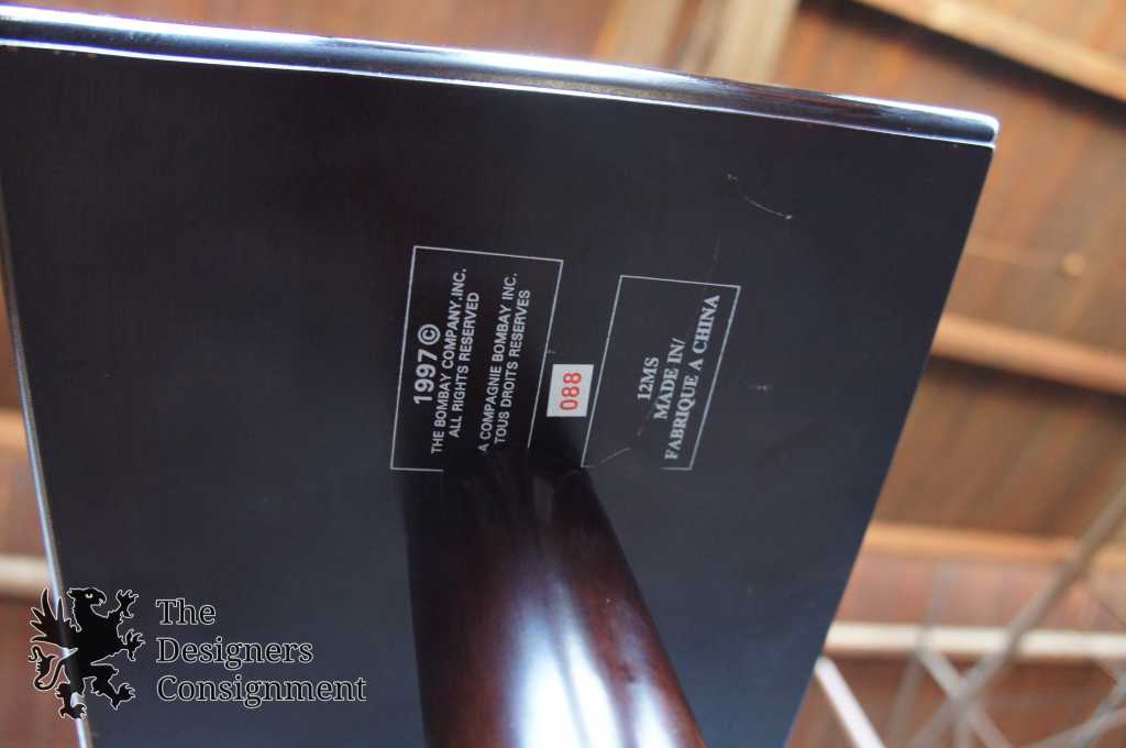 Traditional mahogany finished pedestal by Bombay co. Square shaped with fluted pillar and brass feet.
