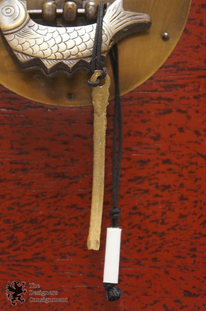 Up for consideration is a red Asian chest. Made from wood with a faux lacquered finish. Features brass handles along the side in addition to a brass latch with Fish Clasp. Interior features a wave crest design.