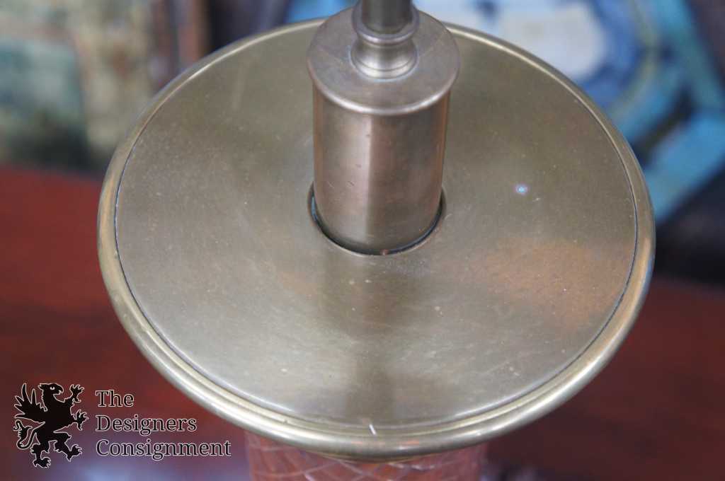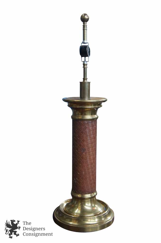 A neat vintage 1990s table lamp. Made from brass with column shape and leather wrapped center. A neat addition to any setting.