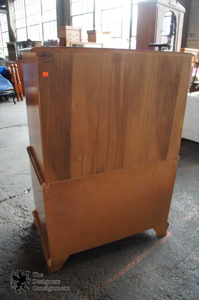 Very Good Overall Condition. There are a few very small blemishes along the drawers as well as one small spot of finish loss above the brass hardware on one drawer. For close up see the last picture. The top of this piece also has one small area showing finish loss up close as seen in the 11th photo. A great overall piece that will make a neat addition to any space.