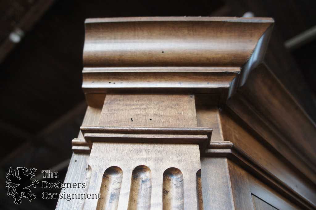 A beautiful handmade ash wood corner cabinet that will look great in any setting. Traditionally styled with fluted sides and antiqued glass. Interior is illuminated with 2 glass shelves. Lower cabinet portion opens with additional compartments for storage. This piece ships via White Glove Service with hand delivery in home.