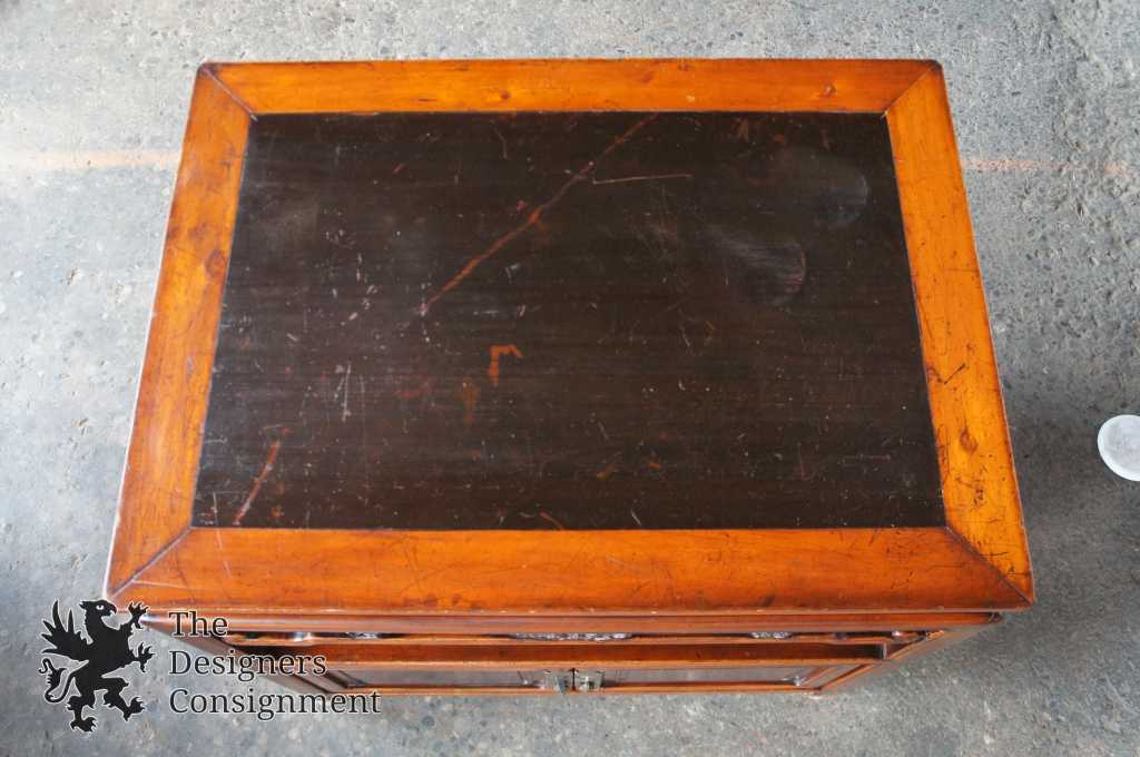Very Good Overall Condition - Distressing throughout (Marks/Scratches) The brass hardware along the right door is missing the loop. This loop would allow for a rod to go through both doors acting as a lock. See Pictures for best description