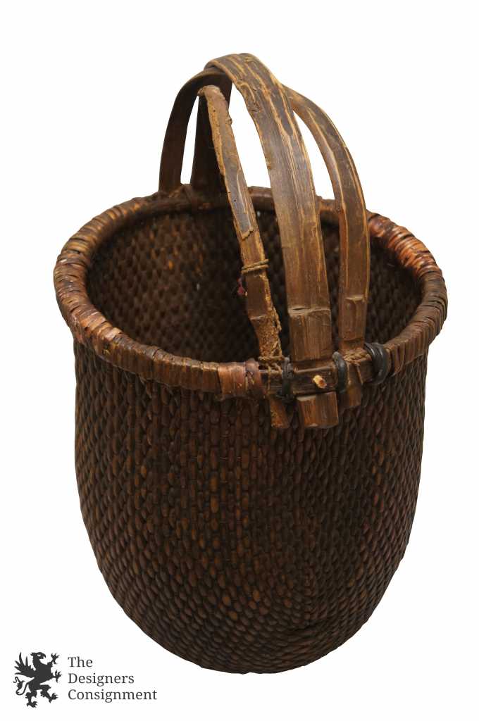 Traditional Antique Chinese Basket. Made from Rattan with 3 Pieces handle.