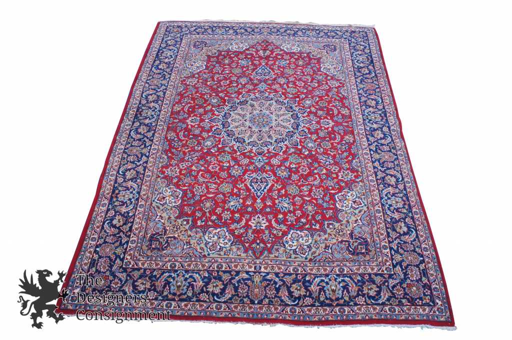 Hand knotted by skillful weavers in Persia using 100% wool, this genuine Najafabad area rug features a floral motif with reds and blues.
