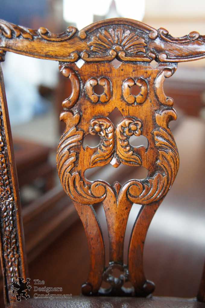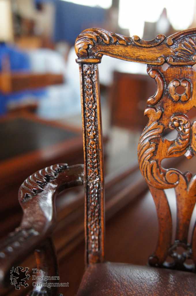 A beautiful Chippendale style miniature/dollhouse arm chair. Made from Mahogany with carved accents and a leather seat. A neat piece for any collection.
