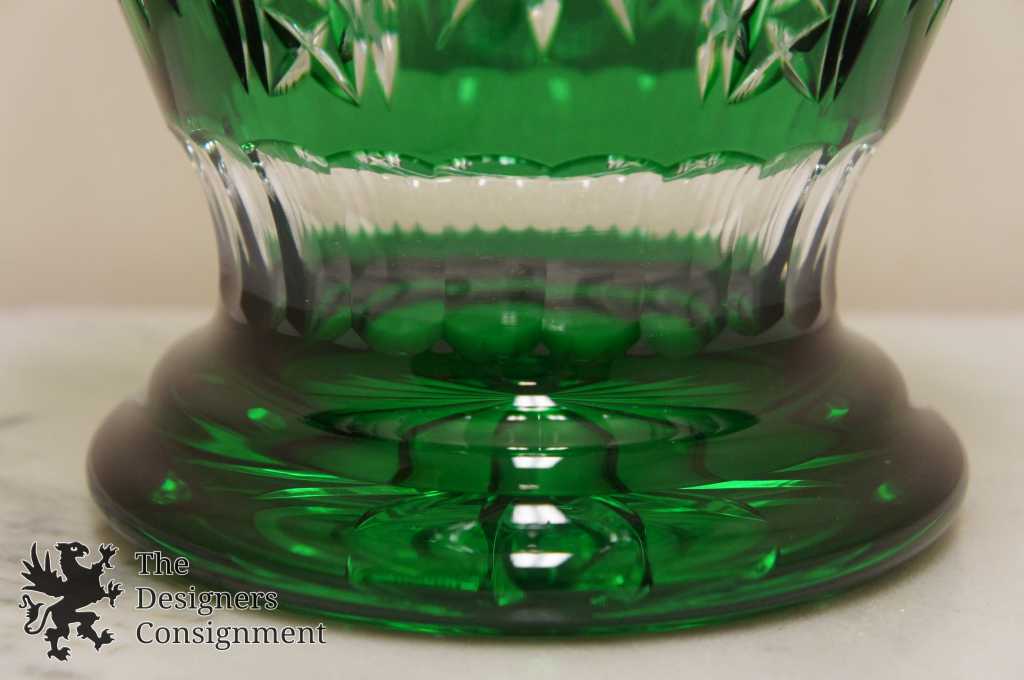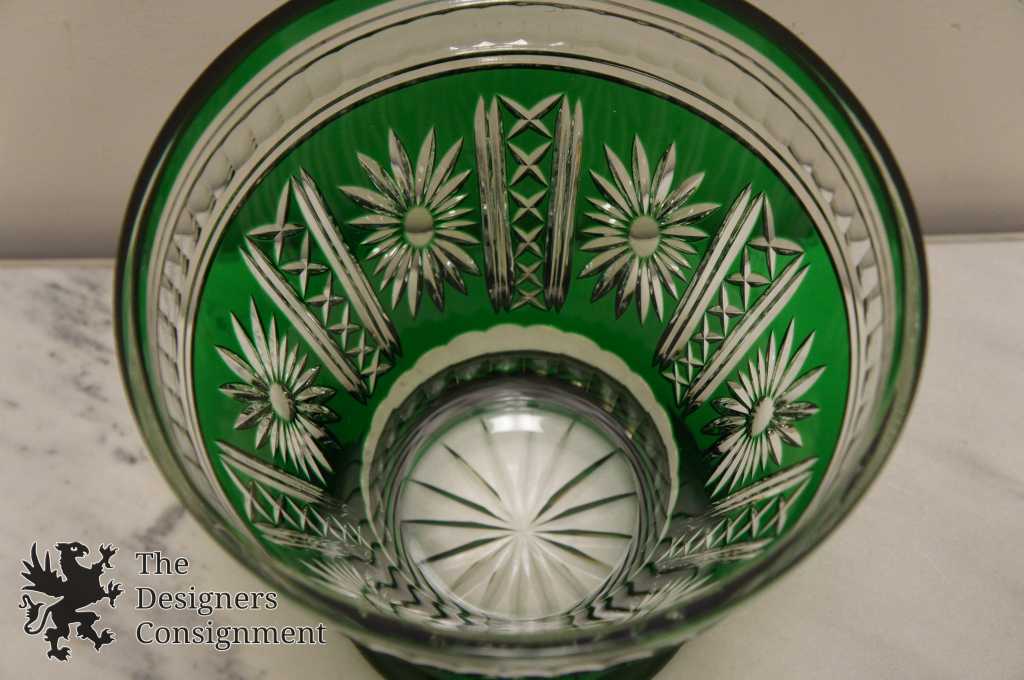 Beautiful green cut to clear glass vase by Rena. Vividly colored with nice and deeply cut sections. Could be used as an ice bucket or display piece.