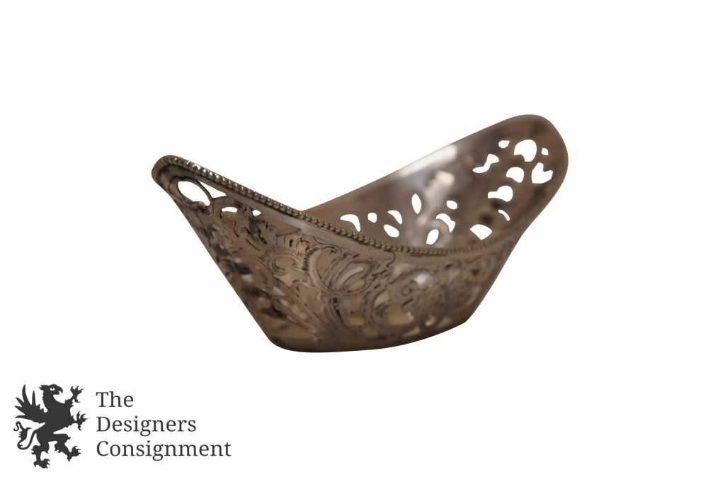 Antique 800 Sterling Silver Reticulated Dish Floral Pierced Boat Serving Basket