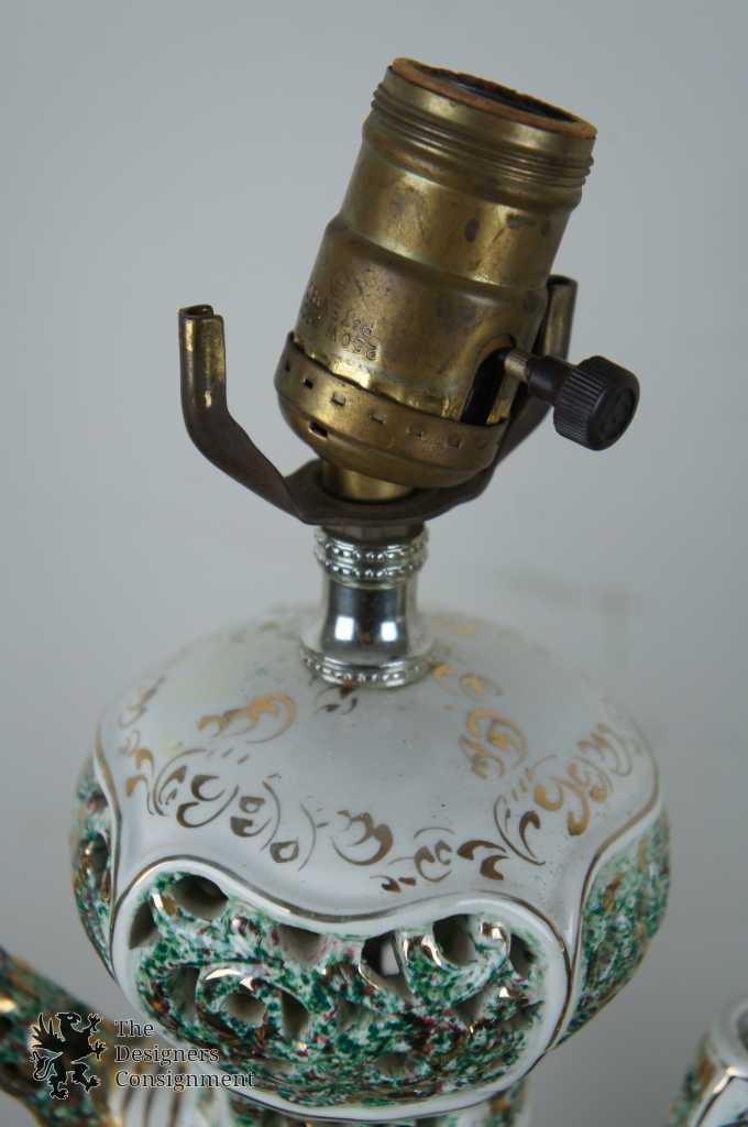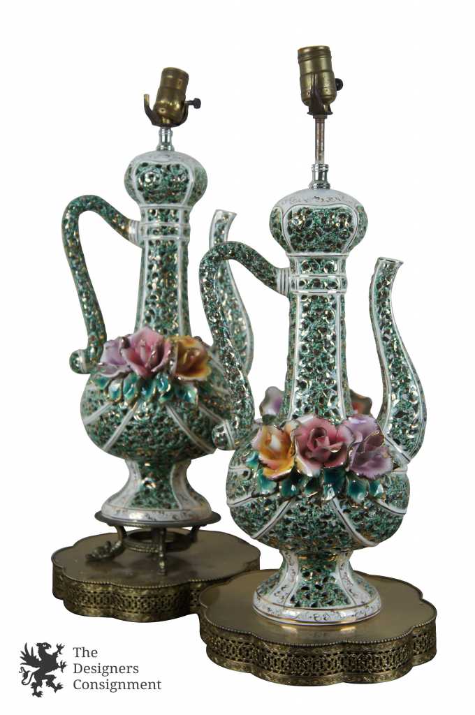 2 Capodimonte Reticulated Porcelain Tea Pot Style Lamps